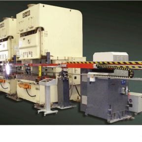 1. 采用高精度AC伺服控制,運行平穩精確; 2. 運動控制器總線控制; 3. 配備材料檢知系統,能夠在設備運行中檢測; 4. 送料行程與升降行程,可由控制器上任意修改